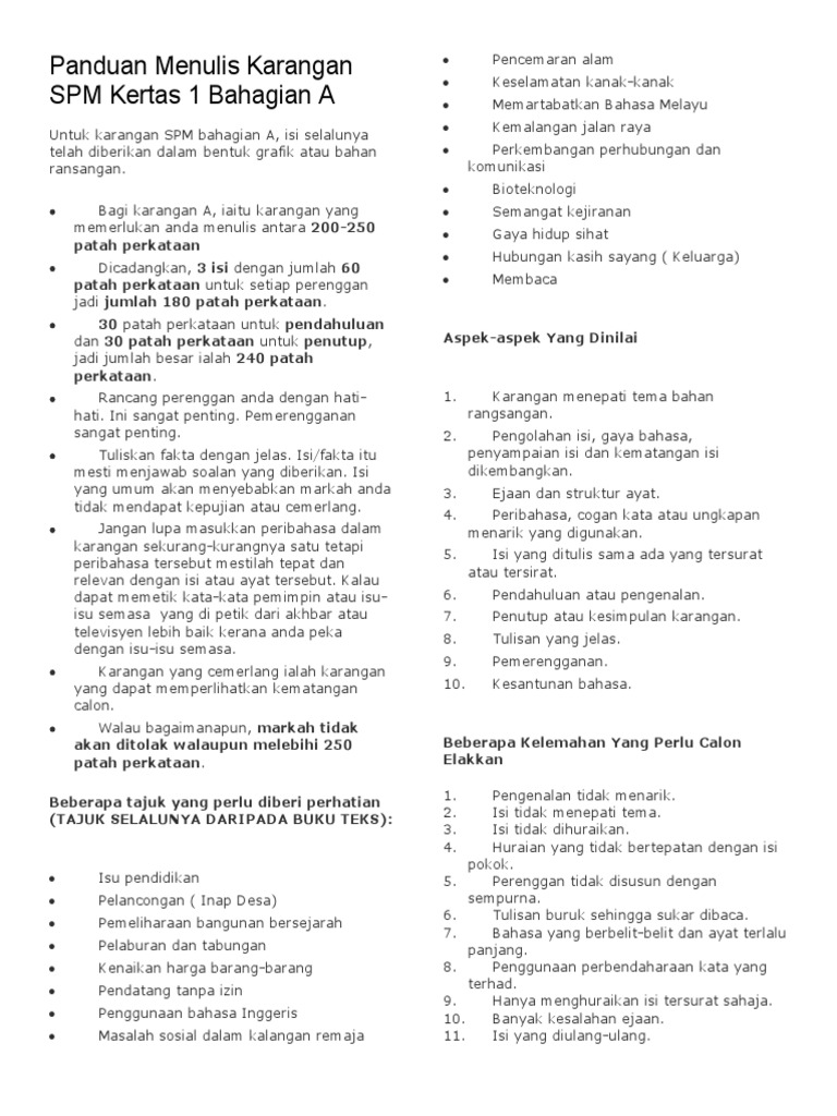Panduan Menulis Karangan Spm Kertas 1 Bahagian A Pdf